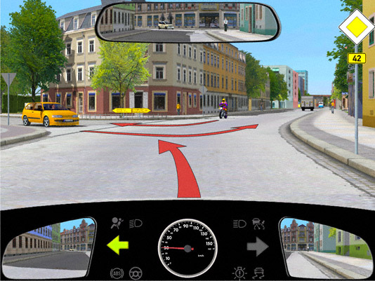 An einem Zebrastreifen hält auf dem rechten Fahrstreifen ein Lkw an. Sie fahren auf dem linken Fahrstreifen. Wie verhalten Sie sich?