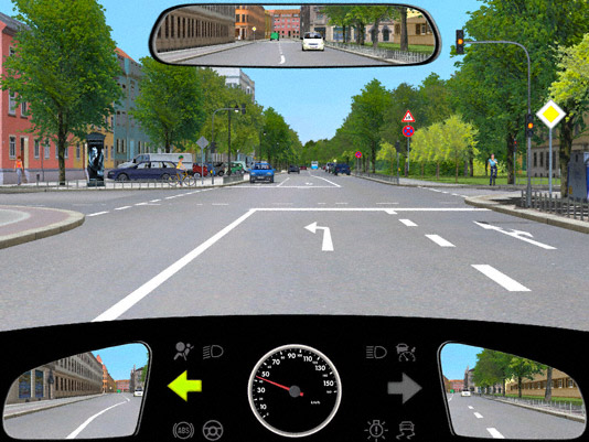 Die Ampel hat gerade auf "Gelb" gewechselt. Wie verhalten Sie sich als Linksabbieger?